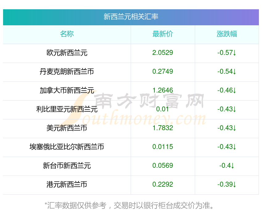 2025年11月23日新西蘭元相關(guān)匯率查詢