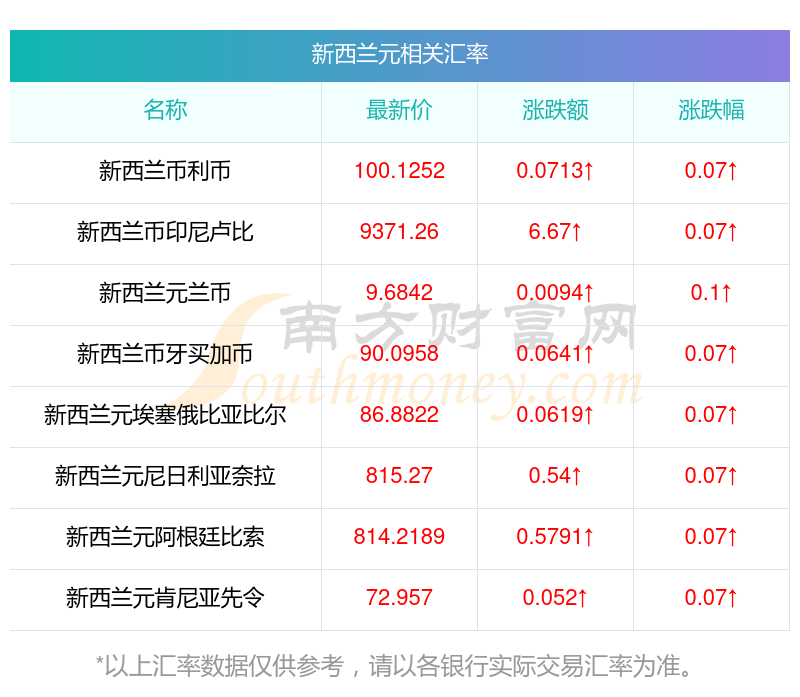 2025年11月26日新西蘭元相關(guān)匯率查詢