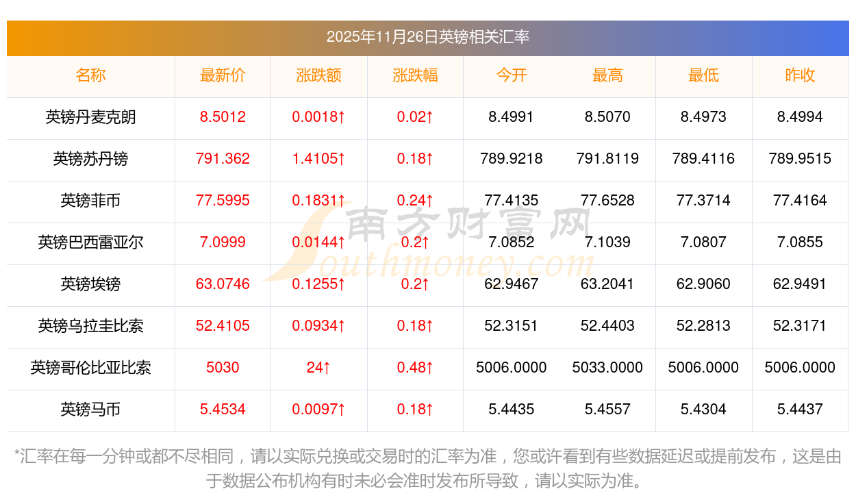 2025年11月26日英鎊相關(guān)匯率查詢