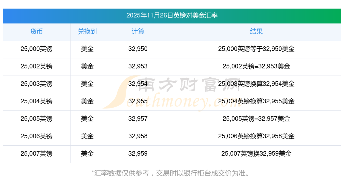 南方財(cái)富網(wǎng)為您提供英鎊對(duì)美金匯率最新價(jià)格詳情。