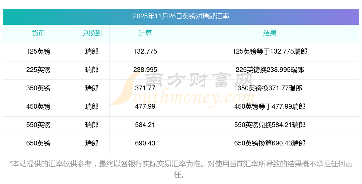 2萬英鎊購匯瑞郎是多少_匯率價(jià)格 11-26