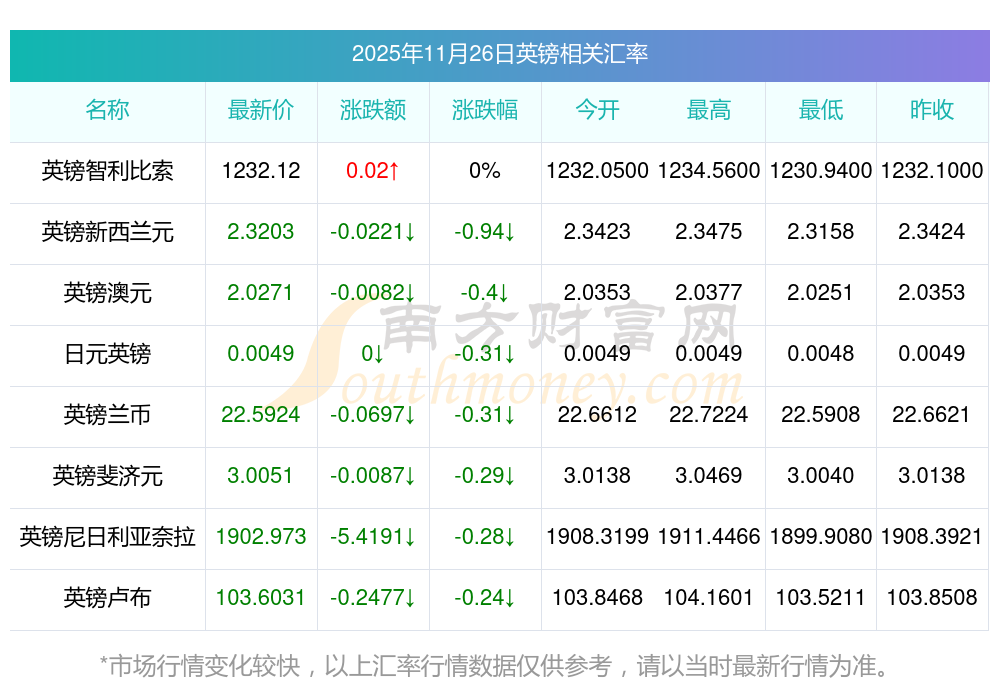 根據(jù)2025年11月26日匯率計(jì)算,GBP兌換MAD匯率最新價(jià)12.208500: