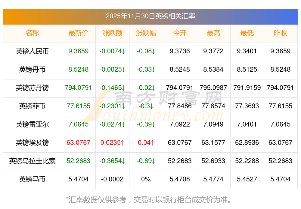 2025年11月30日英鎊相關(guān)匯率查詢