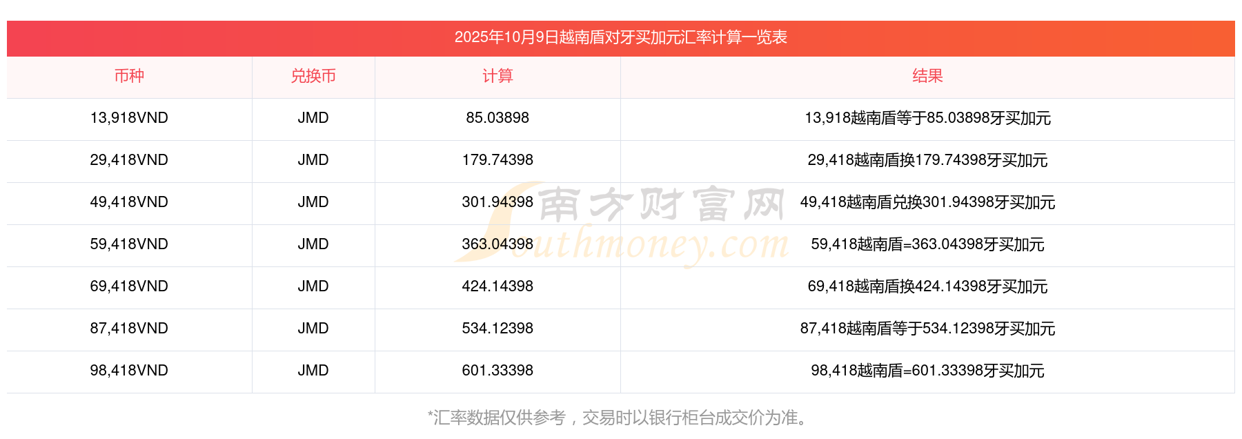 2025年10月9日匯率更新!今天88越南盾兌換牙買加元是多少?