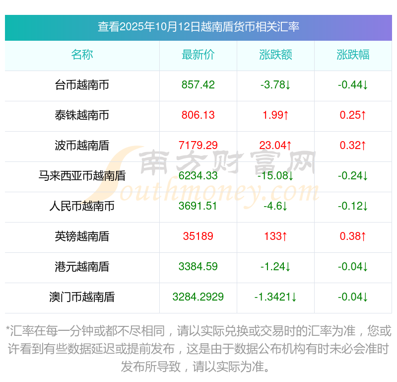 2025年10月12日越南盾相關(guān)匯率查詢