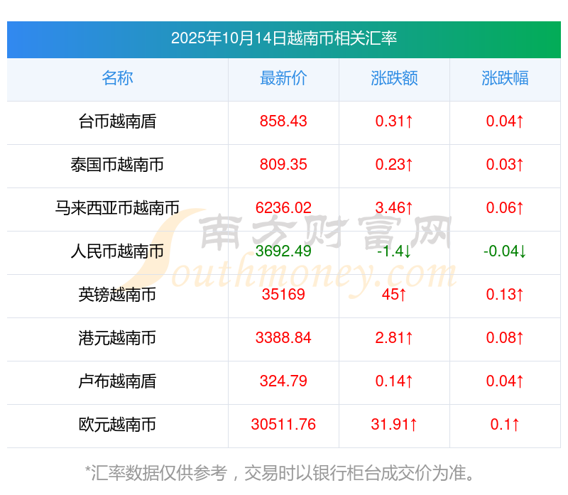 2025年10月14日越南幣相關(guān)匯率查詢
