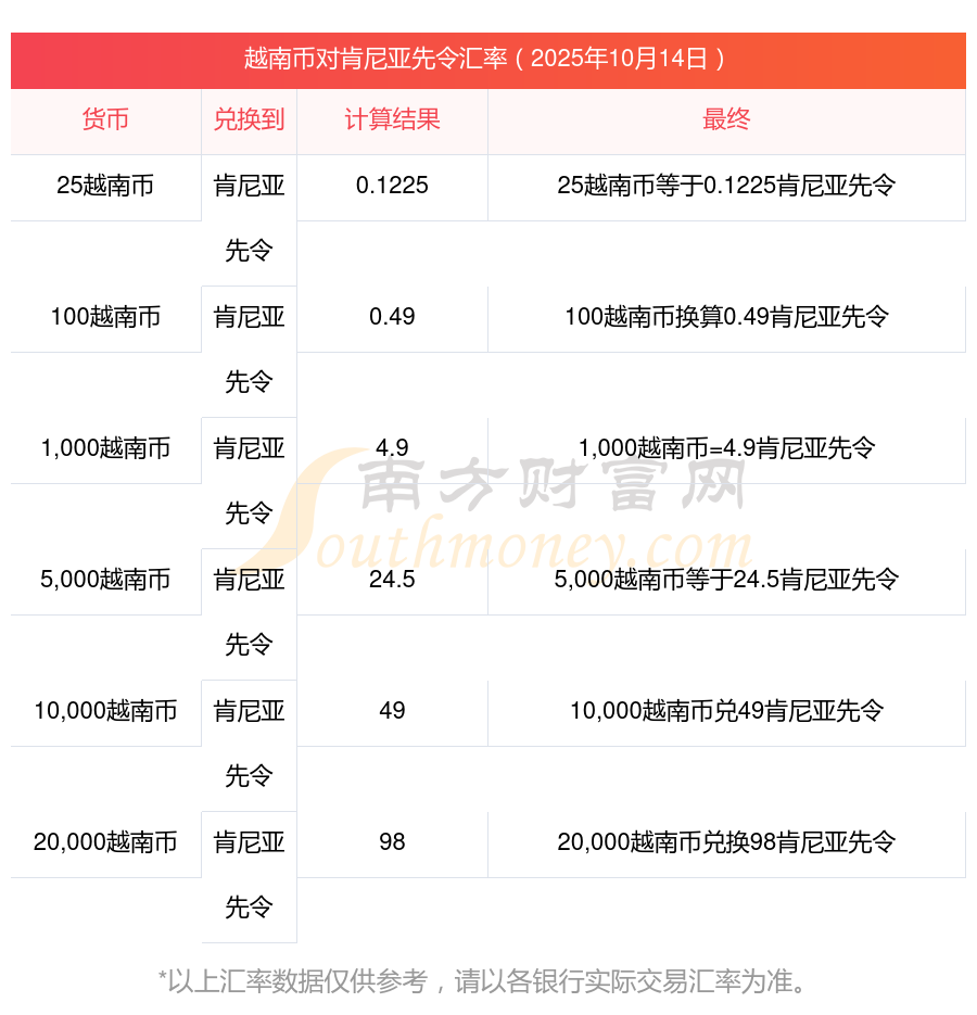 2025年10月14日匯率更新!今天63越南幣兌換肯尼亞先令是多少?