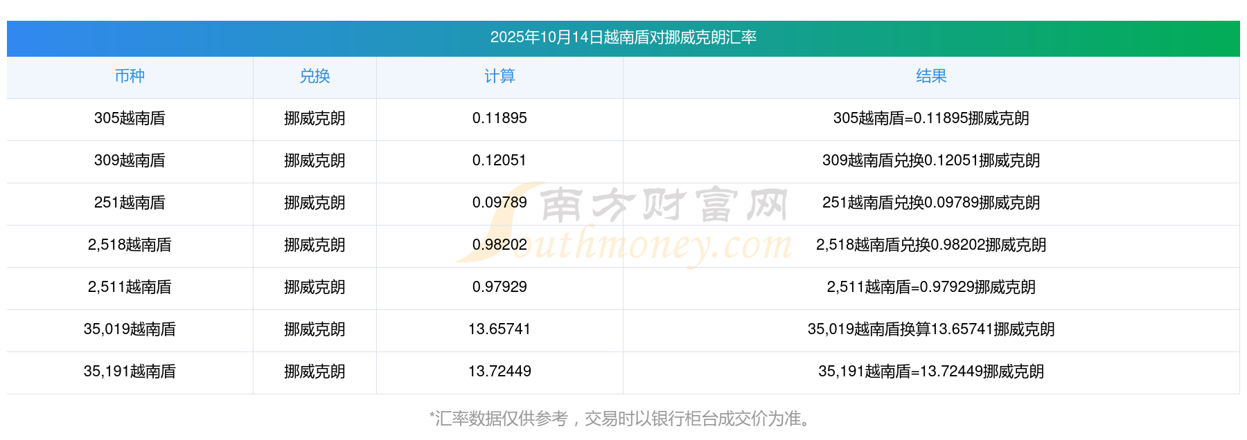 今日匯率調(diào)整:越南盾兌挪威克朗外匯行情一覽(10-14)