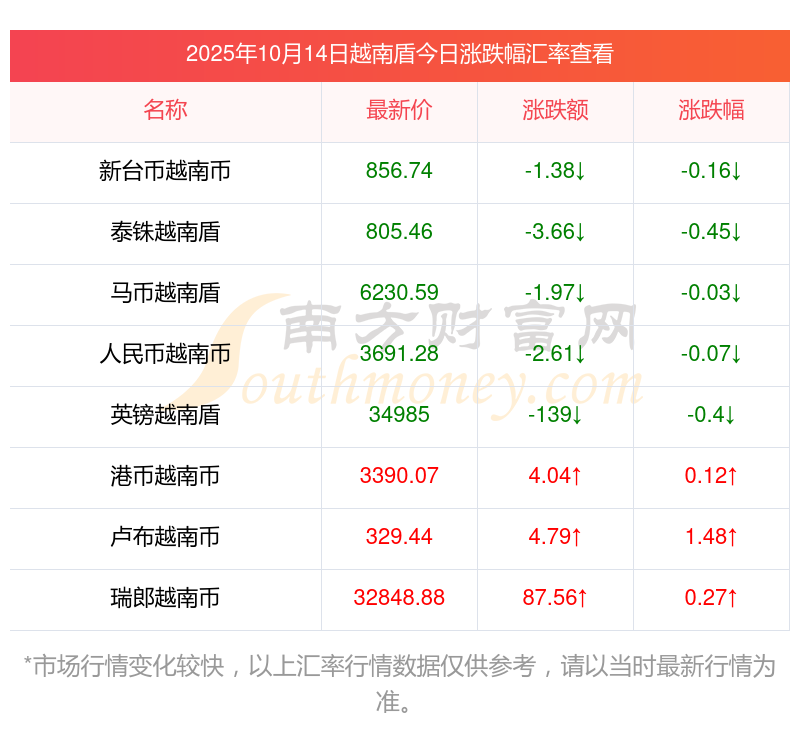 2025年10月14日越南盾相關匯率查詢