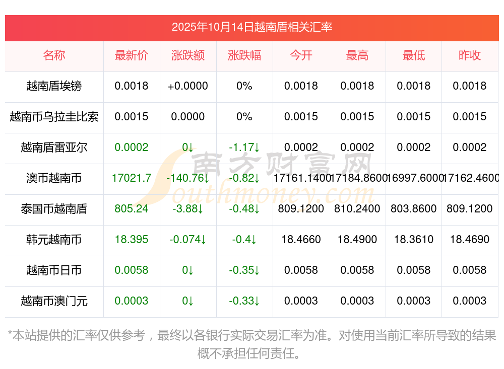 南方財富網為您提供越南盾對瑞郎匯率最新價格詳情。