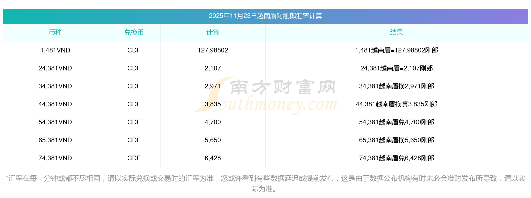 南方財(cái)富網(wǎng)為您提供越南盾對剛郎匯率最新價(jià)格詳情。
