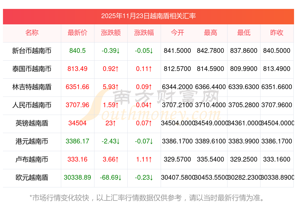 根據(jù)2025年11月23日匯率,越南盾兌換肯尼亞先令匯率最新0.004913,今開0.0049,昨收0.0049,最高0.0049,最低0.0049。