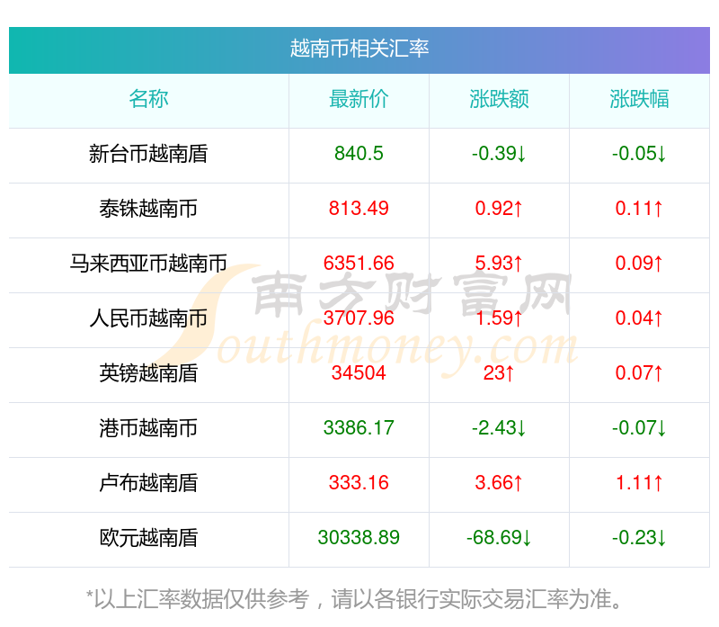 南方財(cái)富網(wǎng)為您提供越南幣對(duì)澳門幣匯率最新價(jià)格詳情。