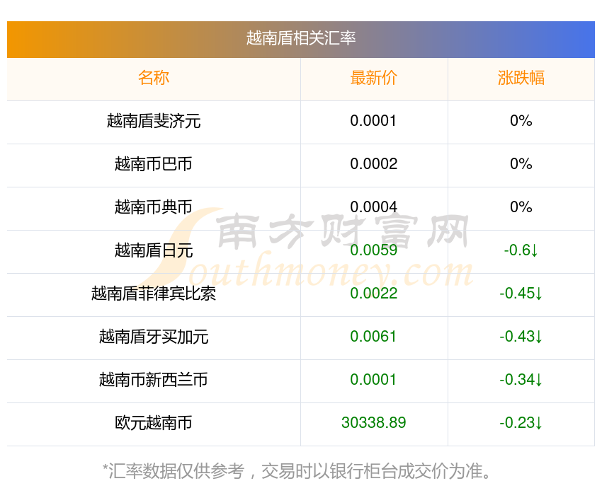 南方財富網為您提供越南盾對菲律賓比索匯率最新價格詳情。