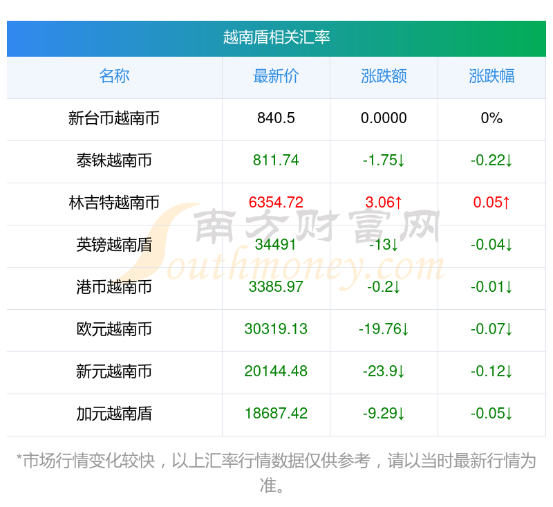 南方財富網(wǎng)為您提供越南盾對哥倫比亞比索匯率最新價格詳情。