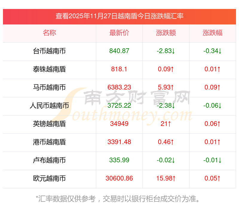 2025年11月27日越南盾相關(guān)匯率查詢