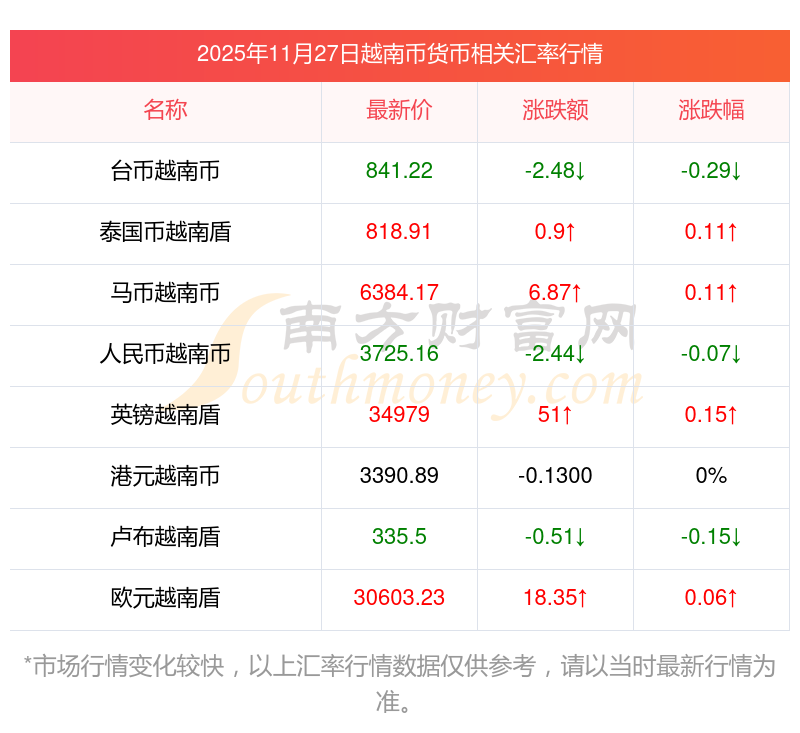 2025年11月27日越南幣相關(guān)匯率查詢