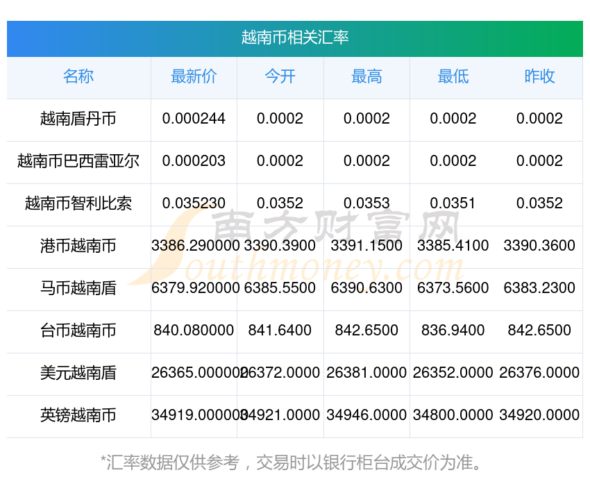 南方財富網(wǎng)為您提供越南幣對新西蘭幣匯率最新價格詳情。
