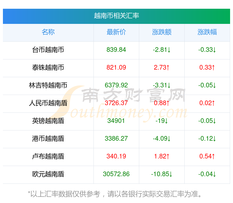 南方財富網(wǎng)為您提供越南幣對美元匯率最新價格詳情。