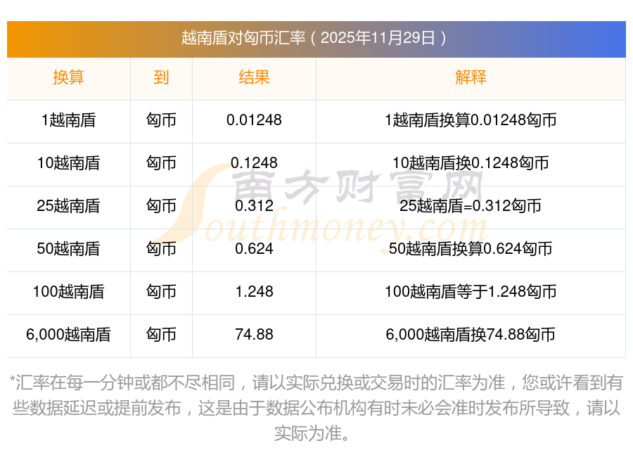 越南盾兌匈幣匯率一覽?今日匯率查詢11-29