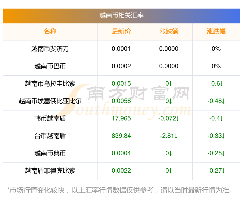 南方財(cái)富網(wǎng)為您提供越南幣對(duì)剛郎匯率最新價(jià)格詳情。