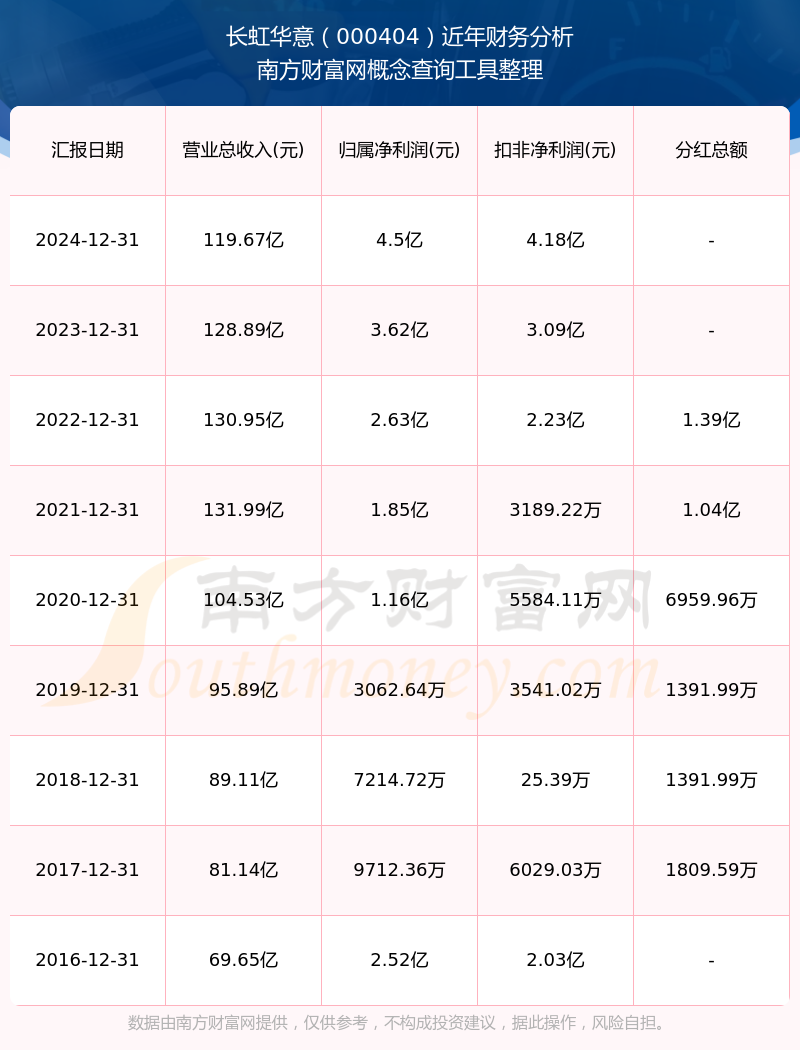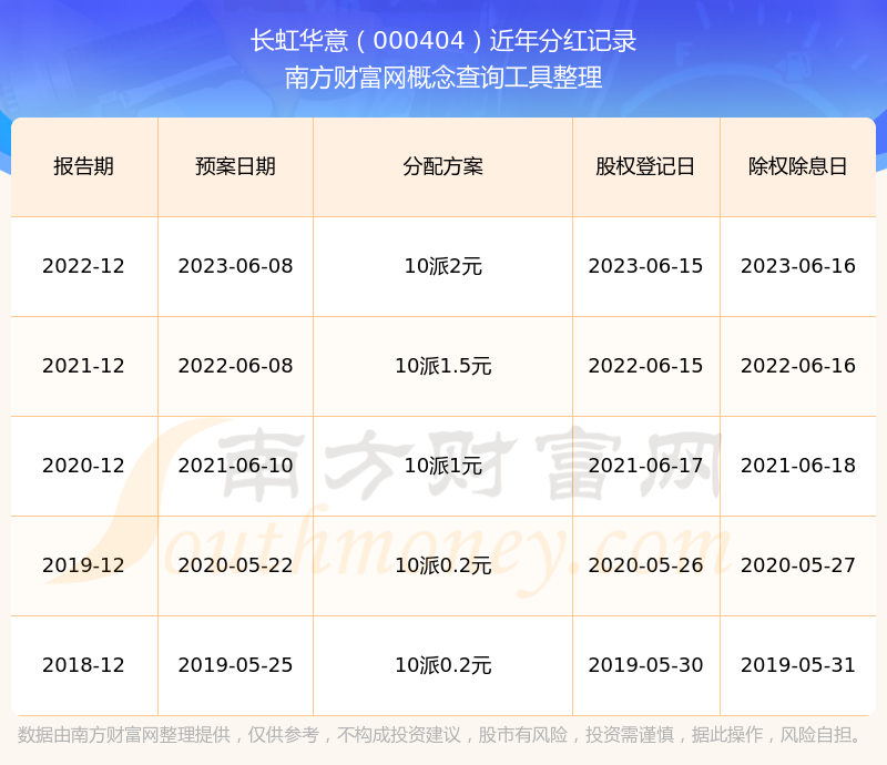 近年長虹華意分紅派息情況如下表所示: