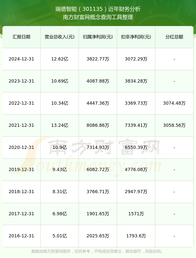 近年瑞德智能分紅派息情況如下表所示:
