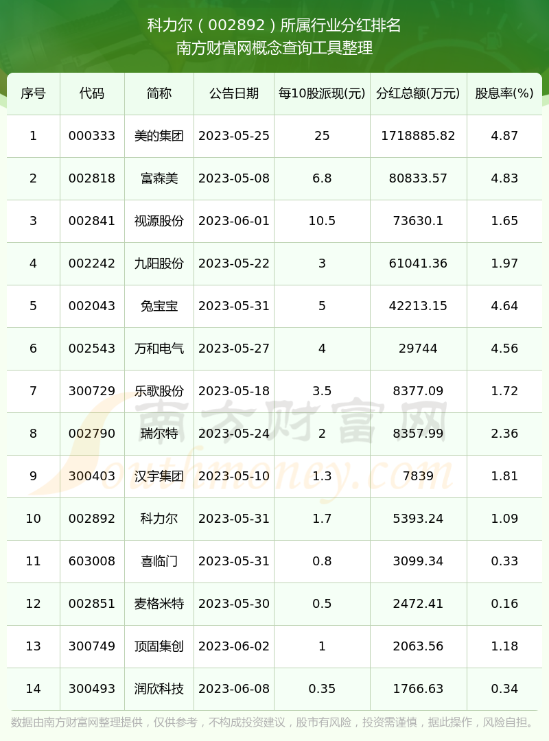二、科力爾002892行業(yè)分紅排名
