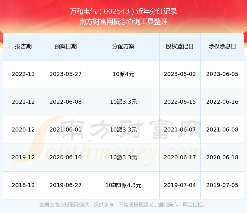 萬和電氣最新一次公布的分紅方案:10派4元。