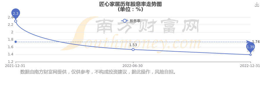 匠心家居歷年股息率走勢(shì)如下圖: