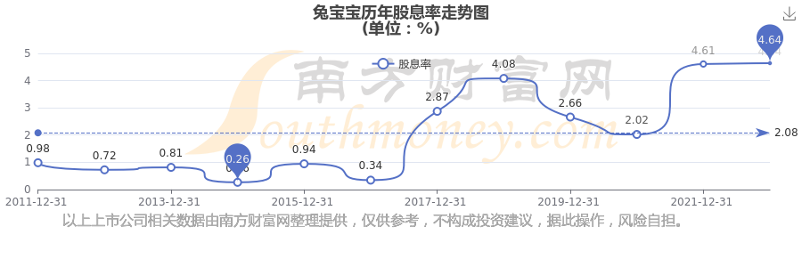 近年兔寶寶年度股息率走勢(shì)如下圖: