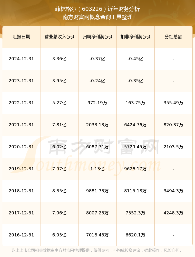 菲林格爾最新一次公布的分紅方案為10派0.1元。本次權(quán)益分派股權(quán)登記日為2023年6月6日,除權(quán)除息日為2023年6月7日,派息日為2023年6月7日。