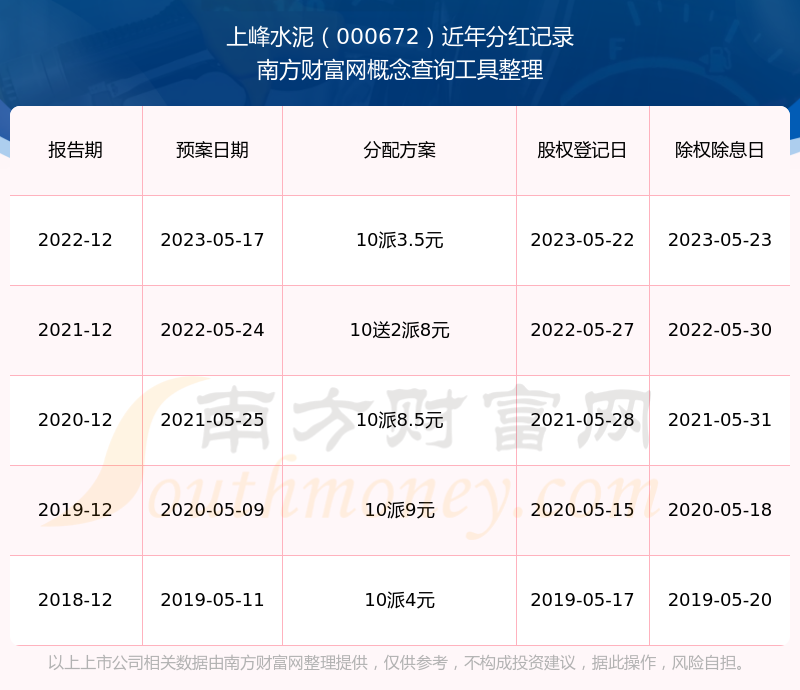 上峰水泥最新一次公布的分紅方案:10派3.5元。