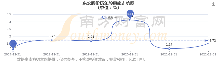 東宏股份最新一次公布的分紅方案為10派1.74元。本次權(quán)益分派股權(quán)登記日為2023年4月10日,除權(quán)除息日為2023年4月11日,派息日為2023年4月11日。