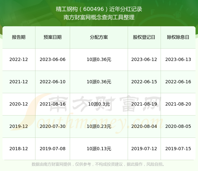一、精工鋼構(600496)股票分紅記錄