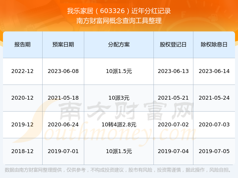 我樂家居最新一次公布的分紅方案:10派1.5元。