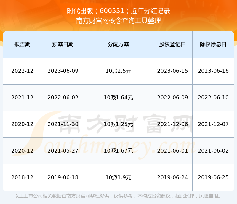 時代出版最新一次公布的分紅方案:10派2.5元。