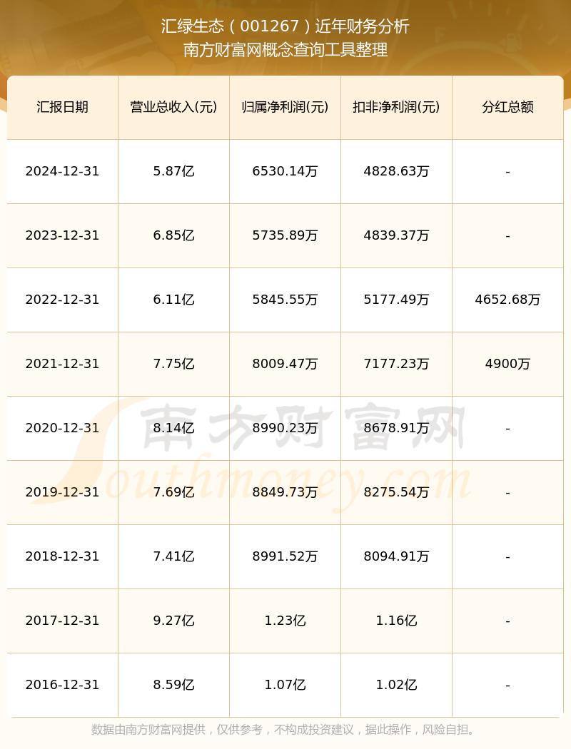近年匯綠生態(tài)分紅派息情況如下表所示: