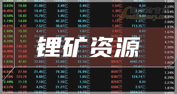 鋰礦資源龍頭是什么?據(jù)南方財富網(wǎng)概念查詢工具數(shù)據(jù)顯示,鋰礦資源龍頭有: