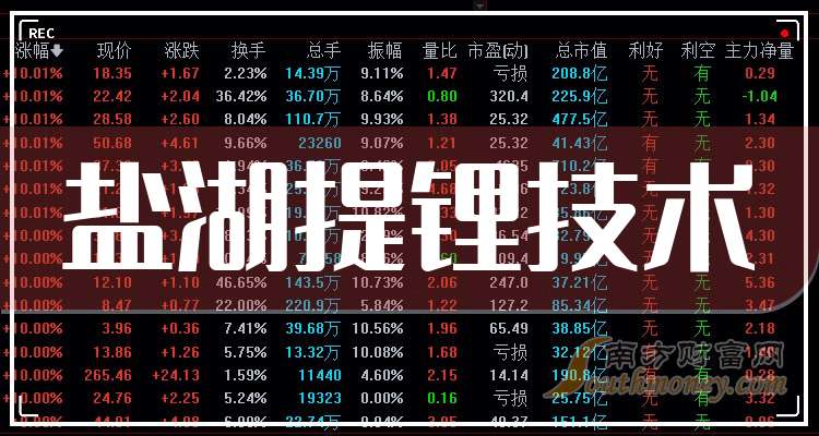 在2025年A股市場中鹽湖提鋰技術龍頭會是哪些呢?據南方財富網概念查詢工具數據顯示,2025年鹽湖提鋰技術龍頭: