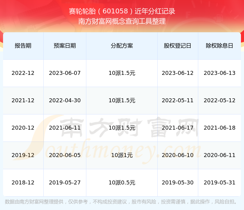 賽輪輪胎最新一次公布的分紅方案:10派1.5元。