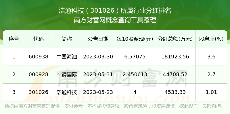 按照南方財富網(wǎng)趨勢選股系統(tǒng)統(tǒng)計,浩通科技所屬行業(yè)為貴金屬回收行業(yè),貴金屬回收行業(yè)分紅排名情況如下表:
