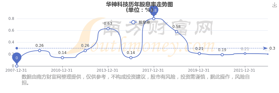 華神科技?xì)v年股息率走勢如下圖: