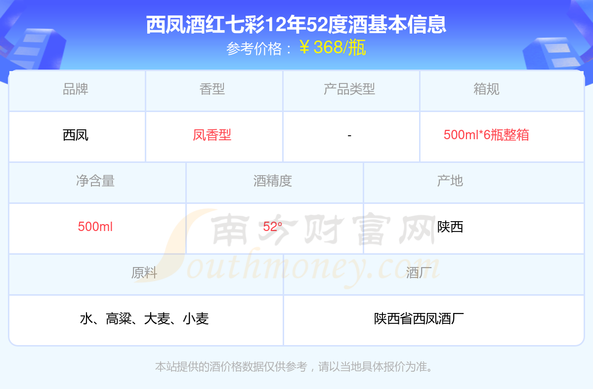 2025年西鳳酒紅七彩12年52度酒價(jià)格表查詢
