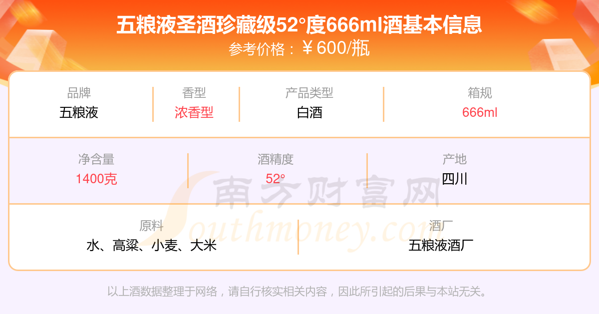 五糧液圣酒珍藏級(jí)52°度666ml基本信息