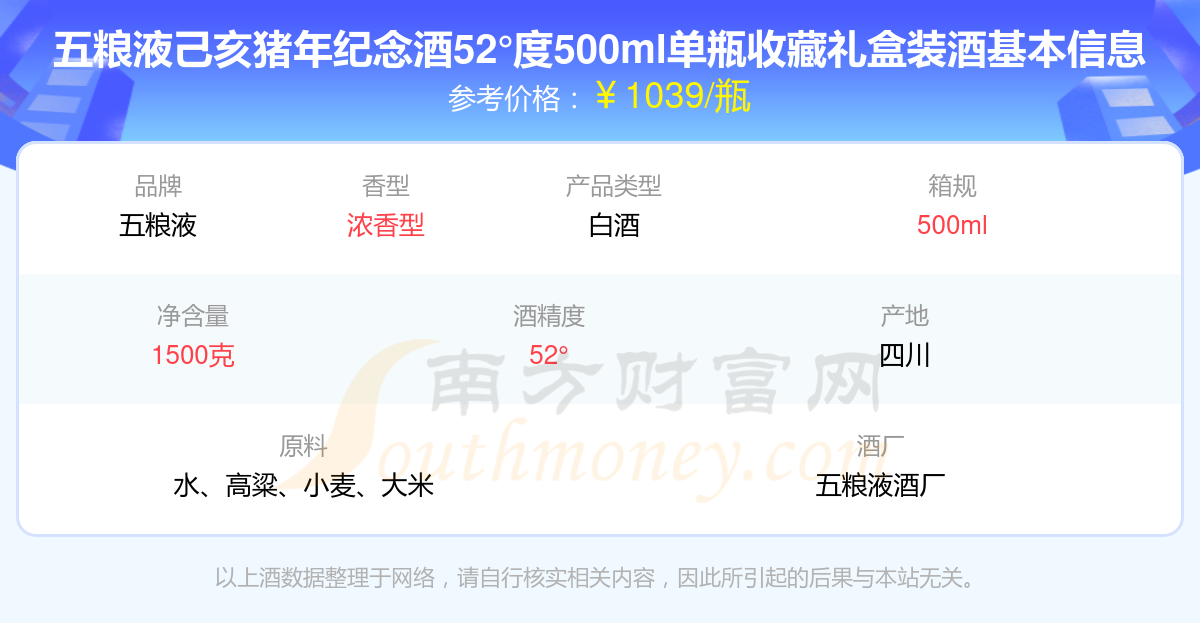 五糧液己亥豬年紀(jì)念酒52°度500ml單瓶收藏禮盒裝基本信息