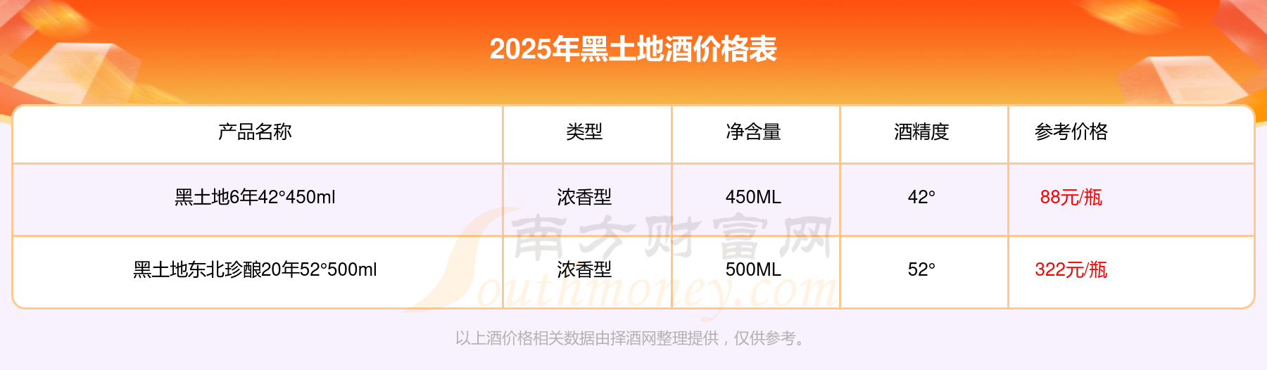 黑土地東北珍釀20年52°500ml參考價322元/瓶、黑土地6年42°450ml參考價88元/瓶。