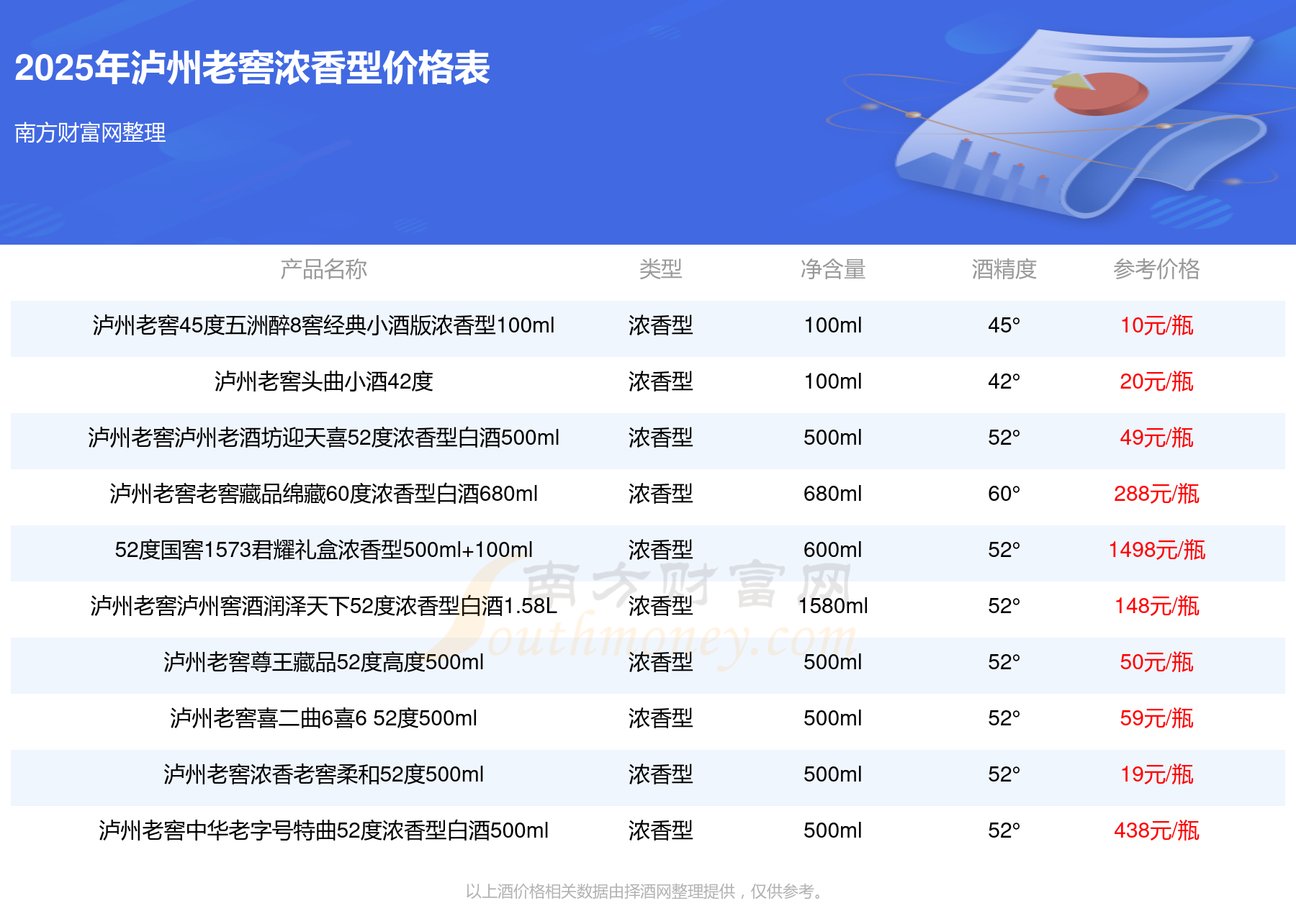 當(dāng)下瀘州老窖濃香型酒價格最高的酒為瀘州老窖國窖1573春釀鼠兆豐年E 55度,參考價17999元/瓶,而瀘州老窖濃香型酒價格最低的是瀘州老窖45度五洲醉8窖經(jīng)典小酒版濃香型100ml,參考價10元/瓶,價格高低差為17989元/瓶。