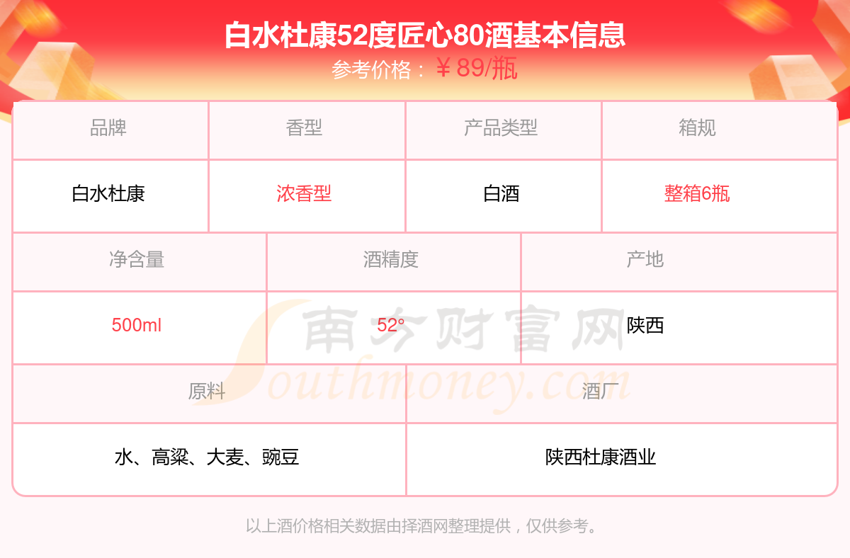 白水杜康52度匠心80基本信息
