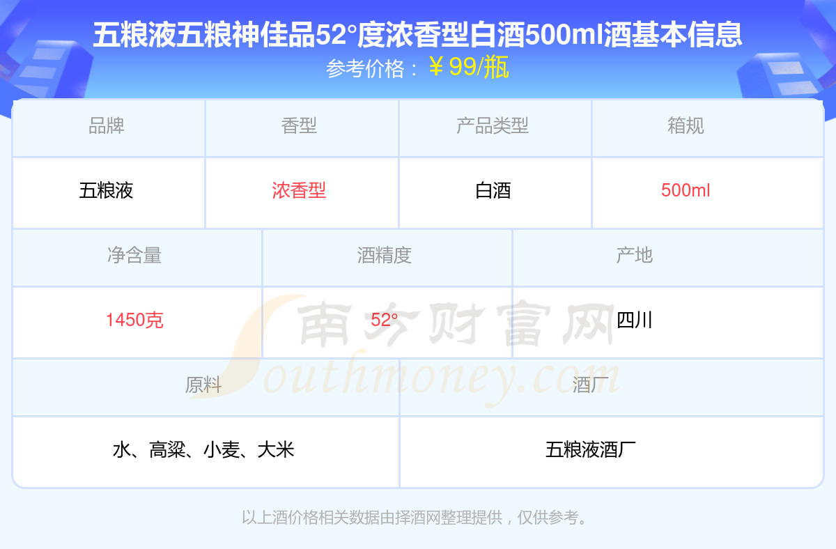 五糧液五糧神佳品52°度濃香型白酒500ml基本信息